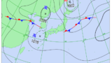 日本海の低気圧の東側で温かく湿った空気が流入して夜は雨が降り出します。