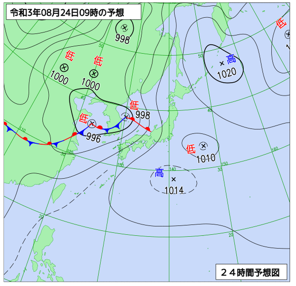 明日は、台風第12号が朝鮮半島から日本海に北東進するため、雨が昼過ぎまで断続的に降るでしょう。