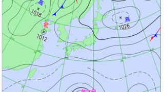 今夜のレーダー画像では、湿った空気の影響で、対馬海峡には雨雲が局地的に観測されています。