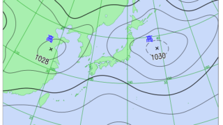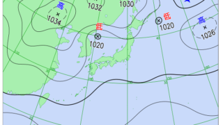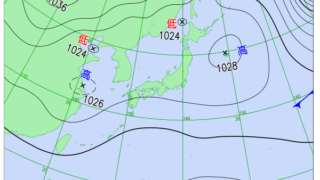 今夜の衛星赤外画像では、気圧の谷に対応する雲域が、朝鮮半島まで進んできています。
