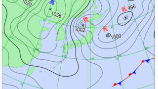 今夜の衛星赤外画像では、中国大陸にある気圧の谷に対応する雲域が九州までかかってきて...