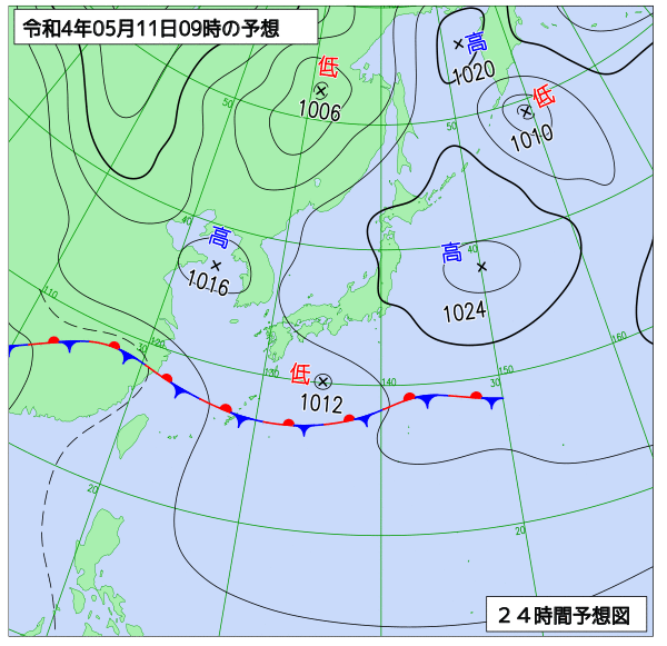 明後日は、前線が九州から四国まで北上してくるため、雨が断続的に降る見込みです。