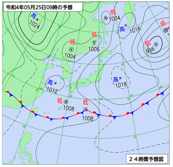 明後日は、前線が通過するため、雨が断続的に降る見込みです。