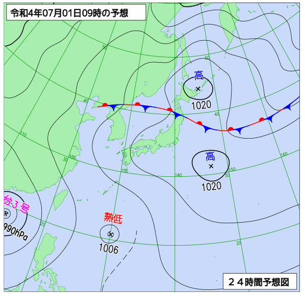 明日は、夏の高気圧に覆われて晴れて、猛暑になるでしょう。