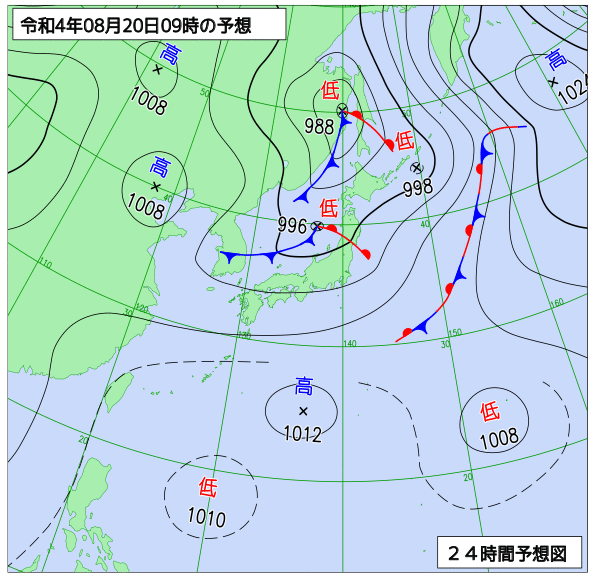 明後日は、前線が中国地方を朝にかけて南下するため、雨が強く降り、大雨になる可能性があります。昼前からは止んでくる見込みです。