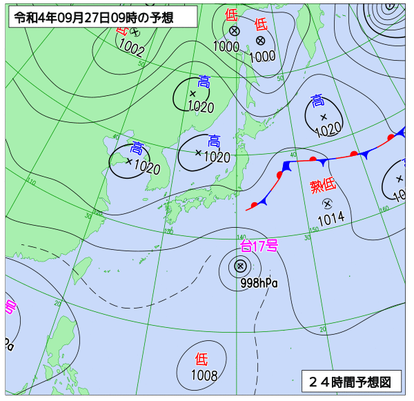 明日は、気圧の谷の大気中層に暖かい空気が流入するため、日中は雨が降るでしょう。