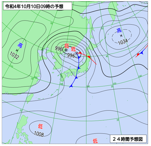 明日は、寒冷前線が朝には通過するため、雨が朝まで降り、その後は、曇り、風が強まるでしょう。