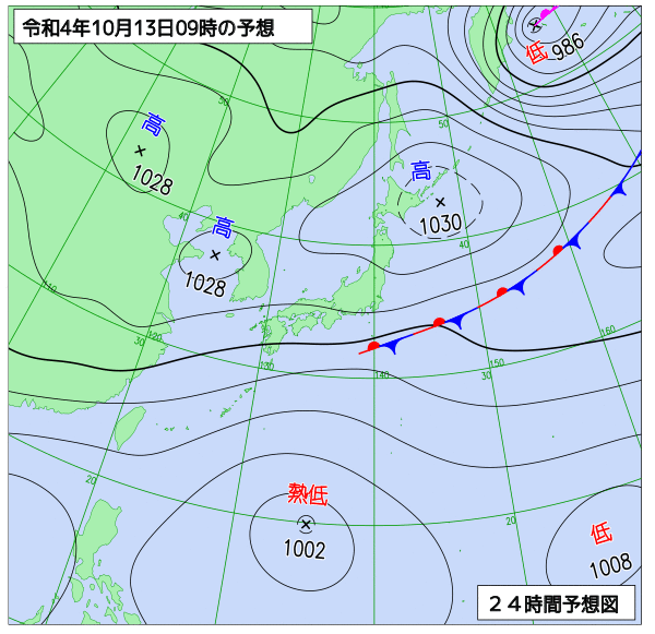 明後日は、日本海から黄海付近の帯状の高気圧の圏内で、晴れる見込みです。