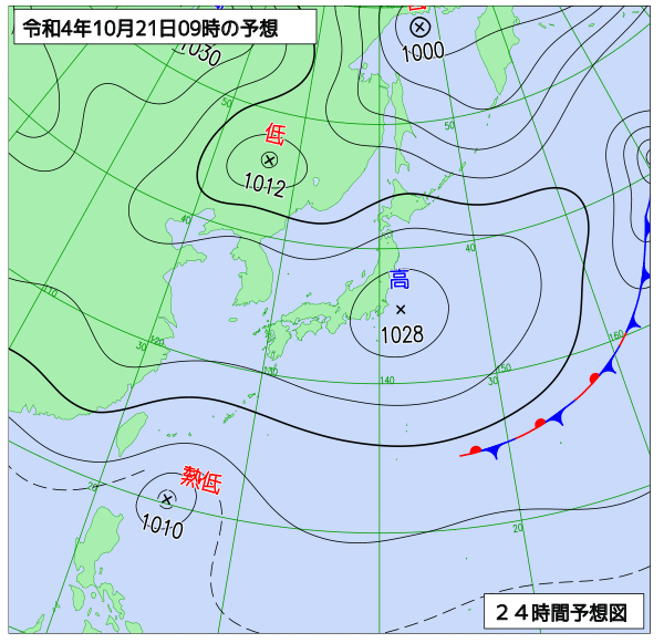 明日は、東日本の高気圧の圏内で、概ね晴れるでしょう。