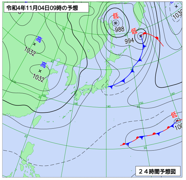 明後日は、寒気の影響で曇り、雨の降る所がある見込みです。