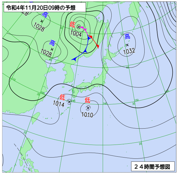 明後日は、朝鮮半島の高気圧に覆われるため、概ね晴れる見込みです。