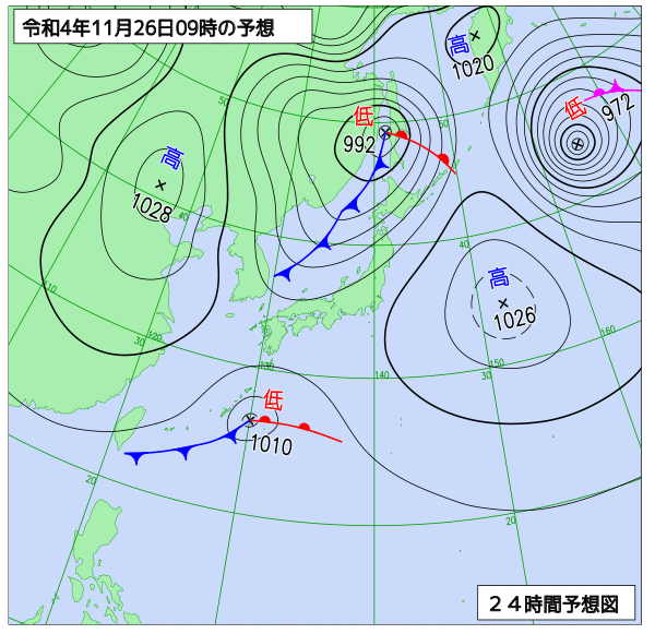 明後日は、朝鮮半島の高気圧に覆われるため、概ね晴れる見込みです。