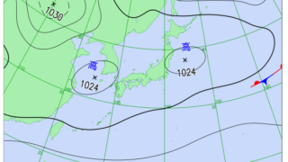 今夜の衛星赤外画像では、大陸の高気圧に覆われて、西日本は晴れています。