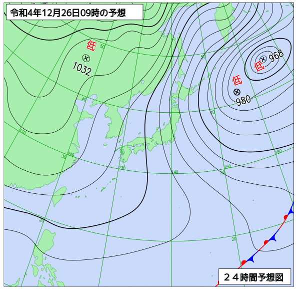 明後日は、気圧の谷の影響で、曇り、時々晴れる見込みです。