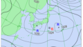 今夜のレーダー画像では、対馬海峡には湿った空気による雨雲が観測されています。