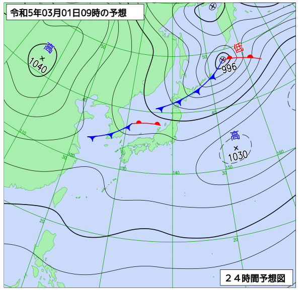 明日は、気圧の谷の影響で、曇り、夕方からは暖かく湿った空気の影響で雨が降り、寒冷前線が夜に通過するため、雨が強まるでしょう。