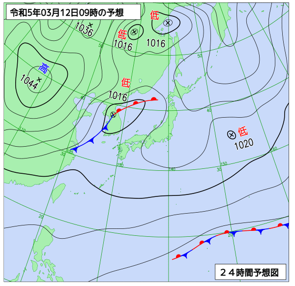 明後日は、寒冷前線が日が変わるころに通過するため、雨が明け方まで降り、その後は、寒気の影響で曇る見込みです。