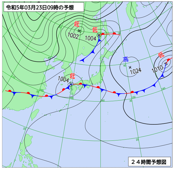 明日は、低気圧を伴った前線が山陰沿岸を通過するため、雨が断続的に降るでしょう。