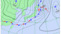 今夜のレーダー画像では、低気圧による雨雲が、対馬海峡で観測されています。