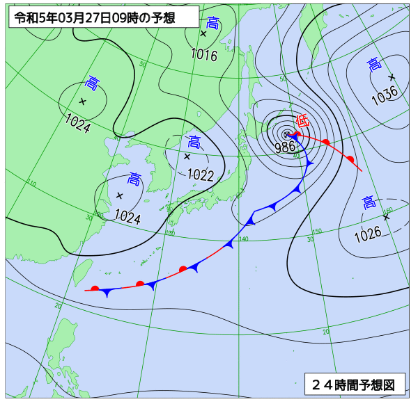 明日は、寒気の影響で曇りますが、昼過ぎからは高気圧に覆われて、晴れてくるでしょう。