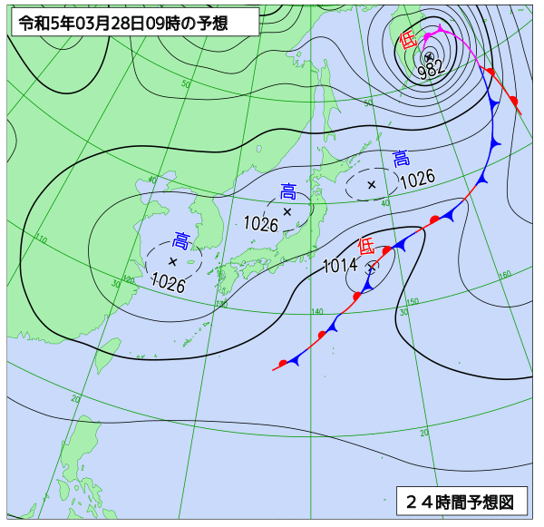 明後日は、朝鮮半島付近の高気圧に覆われて、概ね晴れる見込みです。