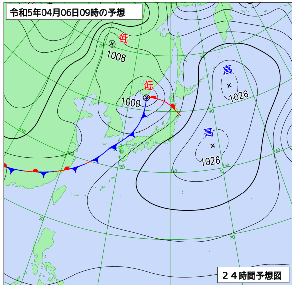 明後日は、気圧の谷と湿った空気の影響で、雨が昼過ぎまで降る見込みです。