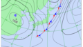 今夜のレーダー画像では、湿った空気による雨雲が、対馬海峡で観測されています。