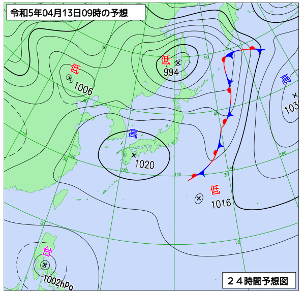 明後日は、気圧の谷の影響で曇り、夜は湿った空気の影響で雨が降り出す見込みです。