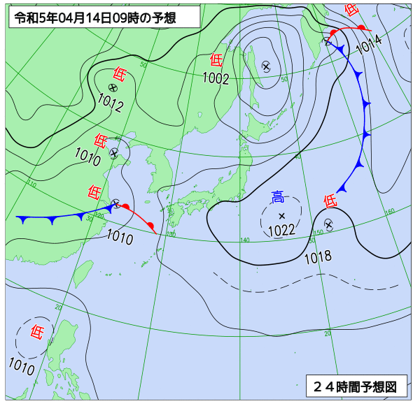 明日は、高気圧の圏内で晴れますが、気圧の谷の影響で昼過ぎからは曇り、湿った空気の影響で夜は雨が降るでしょう。
