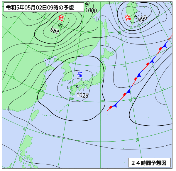 明後日は、東日本に中心を持つ高気圧に覆われるため、概ね晴れる見込みです。
