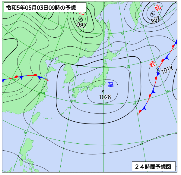 明日は、東日本に中心を持つ、高気圧に覆われるため、晴れるでしょう。