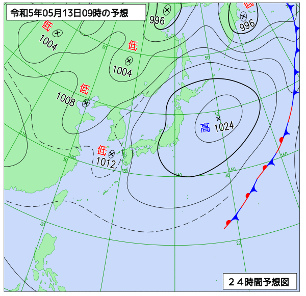 明後日は、気圧の谷と湿った影響で、雨が断続的に降る見込みです。