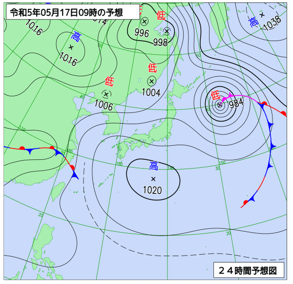 明後日は、高気圧の圏内で晴れますが、昼過ぎからは気圧の谷の影響で、曇る見込みです。