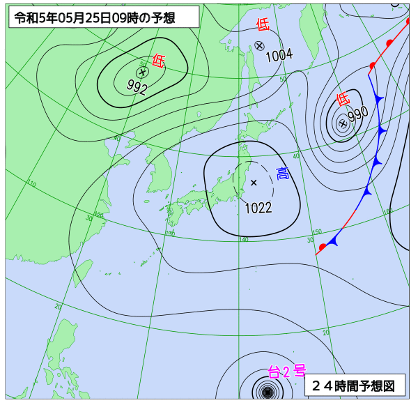 明後日は、気圧の谷と湿った空気の影響で、概ね曇る見込みです。