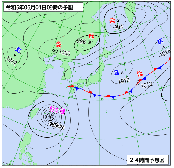 明後日は、日本海に梅雨前線があるため、雨が降り、前線が南下する朝から昼過ぎにかけては、雨が強く降る見込みです。