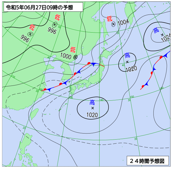 明後日は、梅雨前線が山陰沿岸から南下してくるため、雨が昼過ぎまで降る見込みです。