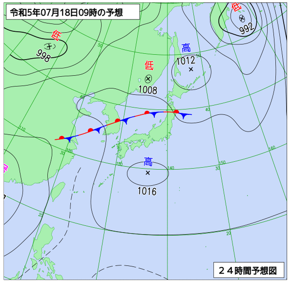 明後日は、梅雨前線が日本海から南下してくるため、雨が断続的に降る見込みです。