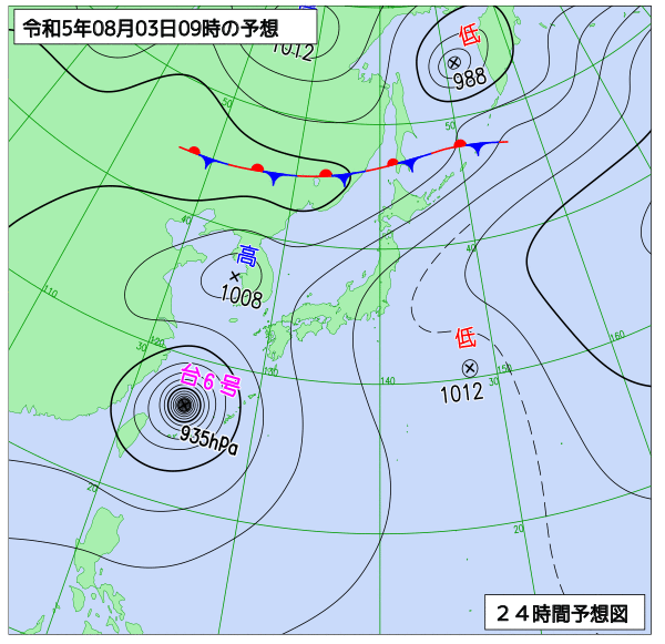 明後日は、高気圧に覆われて、概ね晴れて、猛暑になる見込みです。