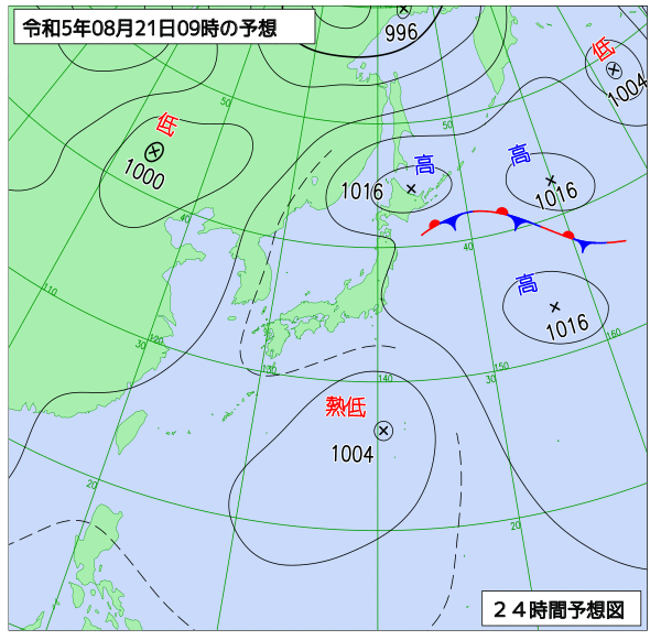 明日は、高気圧に覆われて晴れますが、午後は湿った空気と強い日射の影響で、山地では雷雲が発生するでしょう。