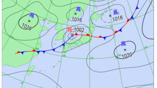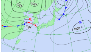 今夜のレーダー画像では、前線に対応する雨雲が、朝鮮半島から日本海にかけて観測されています...