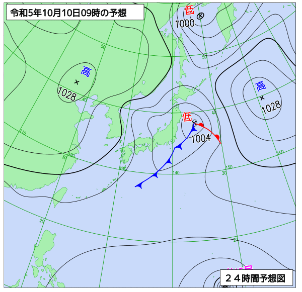 明日は、気圧の谷の影響で、曇り、雨が昼前に降るでしょう。