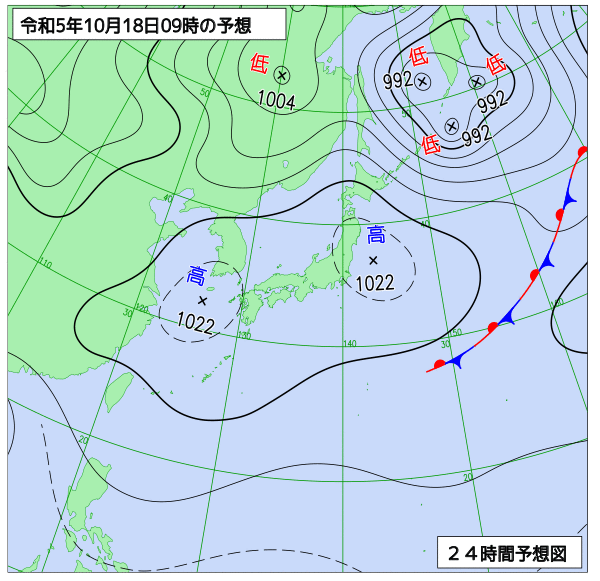明後日は、高気圧の圏内で、晴れますが、昼過ぎからは気圧の谷の影響で、曇る見込みです。