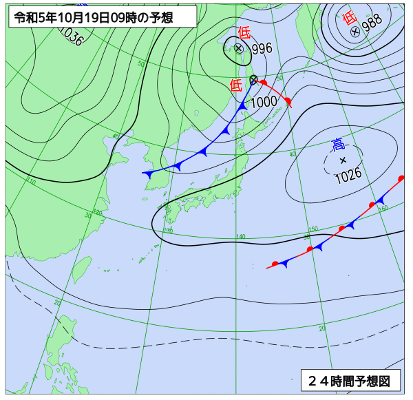 明後日は、寒冷前線が朝に南下するため、雨が明け方から昼過ぎにかけて降る見込みです。