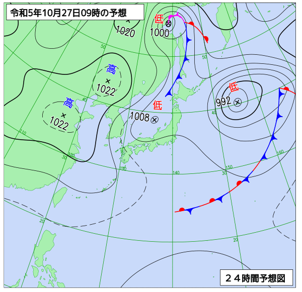 明後日は、湿った空気の影響で、曇り、雨が朝まで降る見込みです。