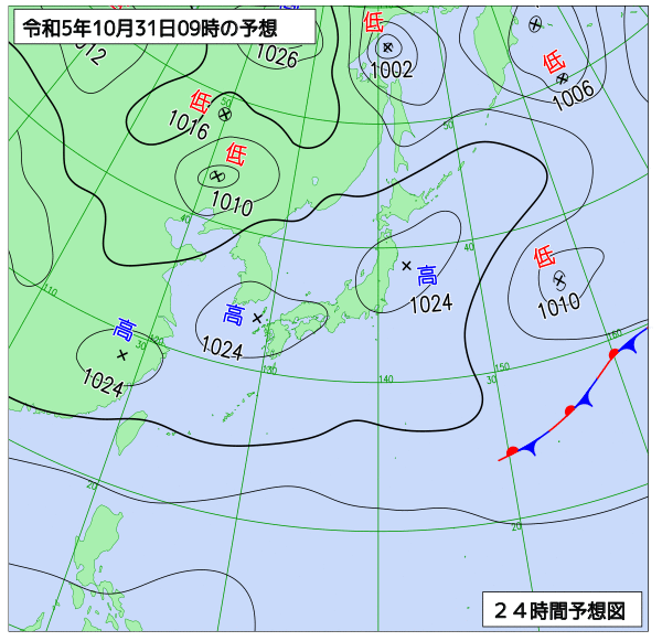 明日は、日本は帯状の高気圧に覆われて、晴れるでしょう。