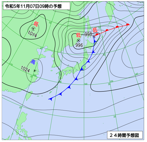 明日は、大気下層の湿った空気の影響で、曇りますが、昼前からは高気圧に覆われてくるため、晴れてくるでしょう。