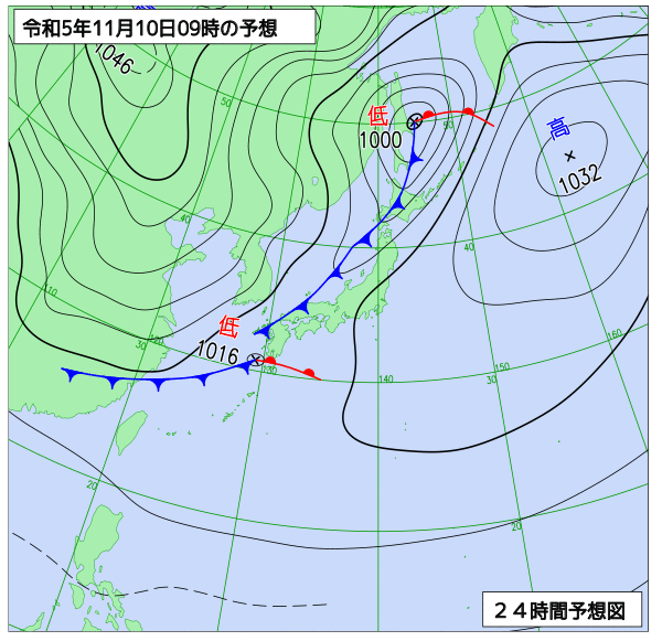 気温が下がり、今年一番の寒さになりますので、留意願います。