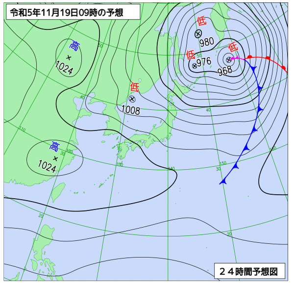 明日は、朝まで寒気の影響で、曇りますが、その後は、高気圧に覆われてくるため、晴れてくるでしょう。