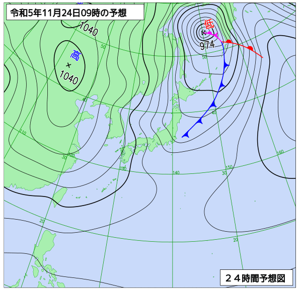 明後日は、寒気の影響で、曇り、雨の降る所がある見込みです。