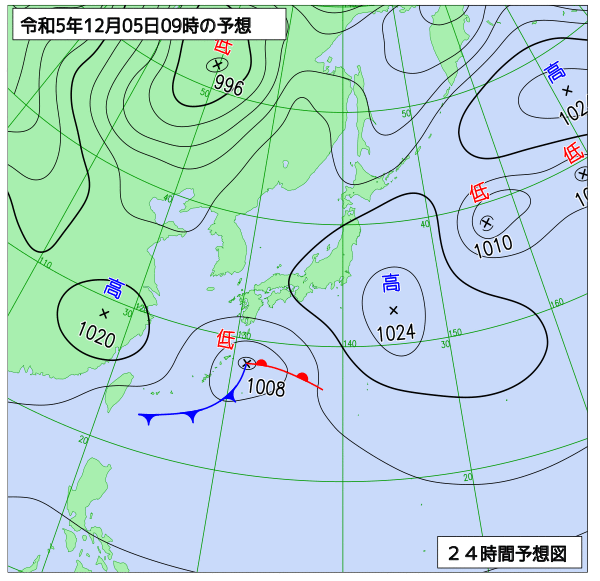 明後日は、高気圧の圏内で晴れて、気圧の谷の接近する、夕方からは曇り、夜は雨の降る所がある見込みです。
